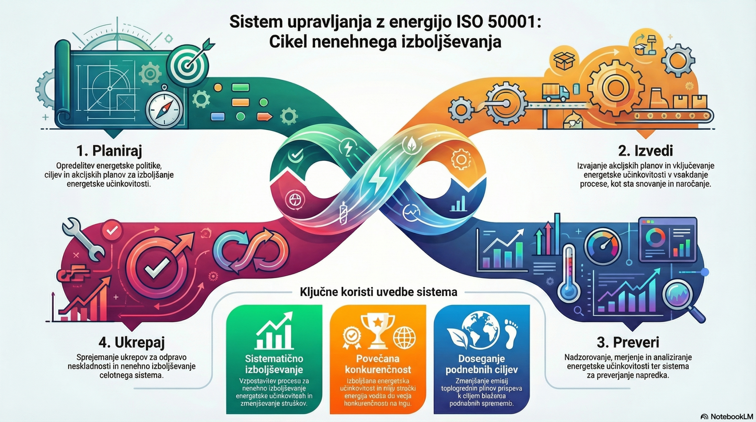 Ta dokument določa zahteve za vzpostavitev, izvajanje, vzdrževanje in izboljšanje sistema upravljanja z energijo (EnMS). Namen je omogočiti organizaciji, da sledi sistematičnemu pristopu pri doseganju stalnih izboljšav energetske učinkovitosti in sistema upravljanja z energijo.