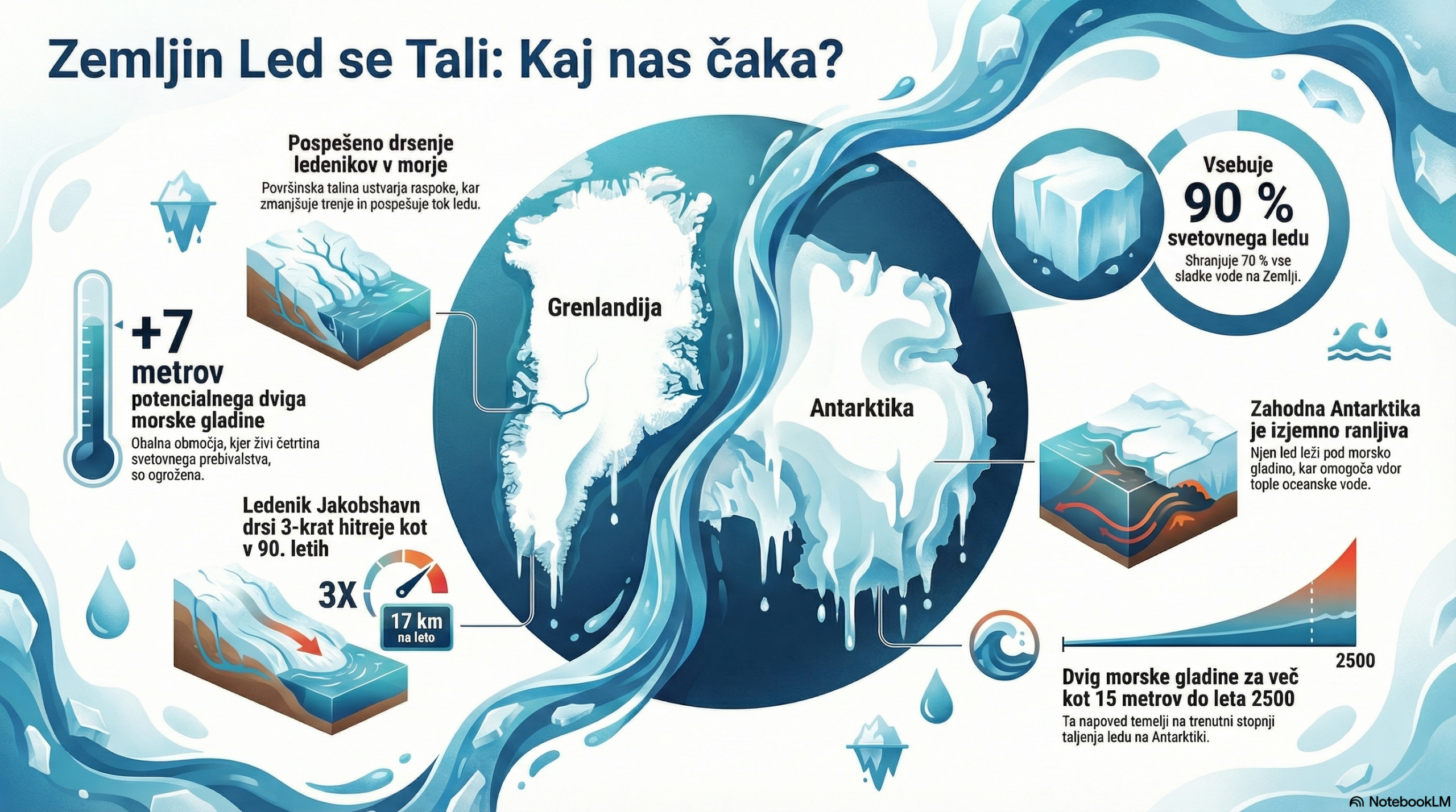 Zanimiv prispevek, poln atraktivnih animacij in podatkov meritev ledenikov in njihovih sprememb na Grenlandiji in Antartiki. Vredno ogleda in razmisleka o Zemeljski kriosferi!