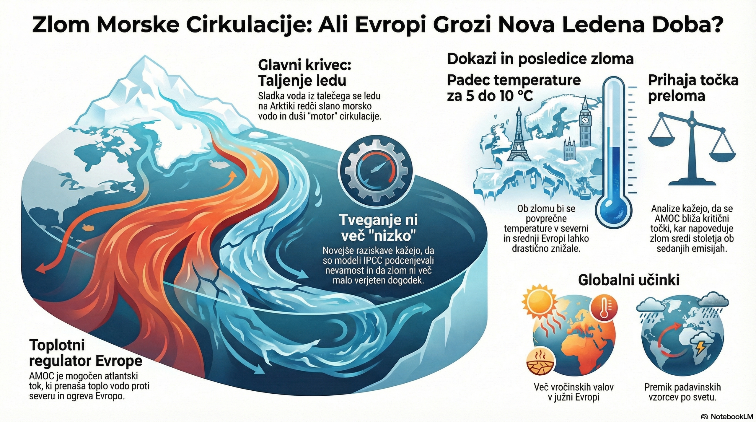 - Nedavne ugotovitve izpodbijajo prejšnje podnebne modele, ki jih je uporabljal IPCC, in kažejo, da lahko podcenjujejo tveganje razpada AMOC zaradi zanemarjanja dejavnikov, kot je pritok sladke vode na Grenlandijo.