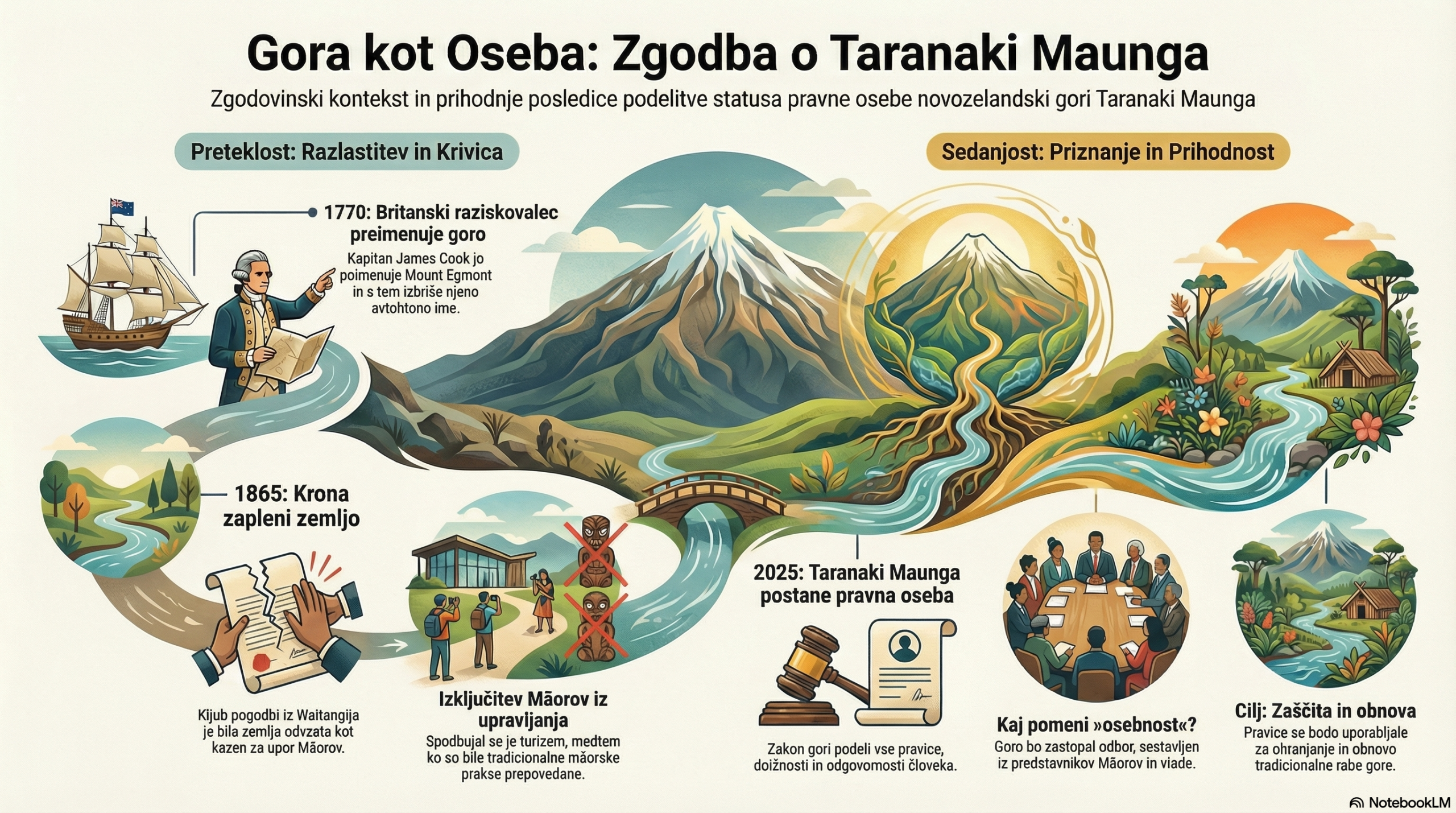 Prispevek na spletnem portalu CNN v rubriki Travel o gori Taranaki Maunga (angl. Mount Taranaki) v Novi Zelandiji, ki je dobila pravno osebnost. To ji podeljuje enake pravice, dolžnosti in odgovornosti kot človeku. V nadaljevanju podajamo kratek povzetek prispevka.