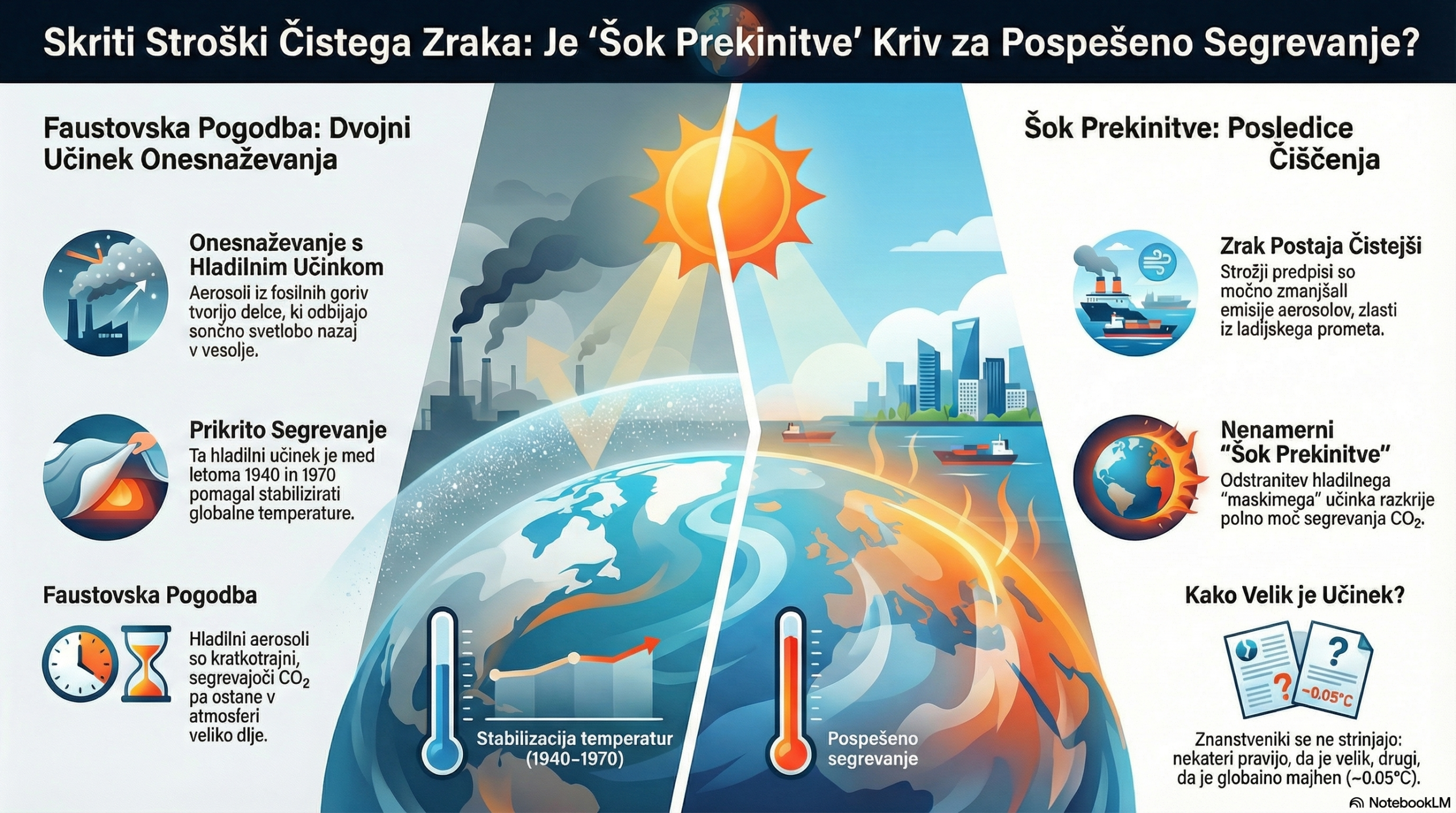 • Posledica: Zmanjšanje koncentracije aerosolov pomeni, da planet, zlasti nad oceani, absorbira več sončne energije.
