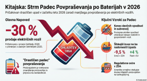 Prispevek na spletnem športalu Battery Tech Network o pričakovanem močnem upadu povpraševanja po kitajskih litijevih baterijah v začetku leta 2026, kar je posledica zmanjšane prodaje električnih vozil in šibkejšega izvoza. Glavni razlog za ta negativen trend je postopno odpravljanje davčnih olajšav in subvencij, kar bo po napovedih povzročilo vsaj 30-odstotni padec prodaje zelenih vozil. Strokovnjaki opozarjajo proizvajalce, naj omejijo proizvodnjo in se […]