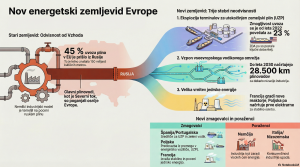 Video posnetek (13:46) na YouTube kanalu Economica Edge o novem energetskem zemljevidu Evrope. Evropski energetski zemljevid doživlja korenito preobrazbo, saj se celina po desetletjih odvisnosti pospešeno odreka ruskemu plinu. Stara infrastruktura cevovodov od vzhoda proti zahodu postaja odvečna, nadomeščajo pa jo morski terminali za utekočinjen zemeljski plin (angl. Liquefied natural gas – LNG) ter ambiciozno omrežje za vodik. V […]